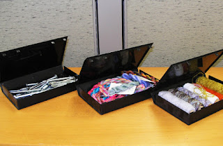 sparkles, buttons, beads, plastic jewels, etc. Once the items are glued on and